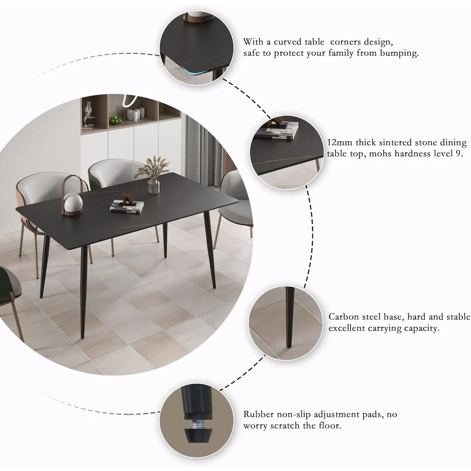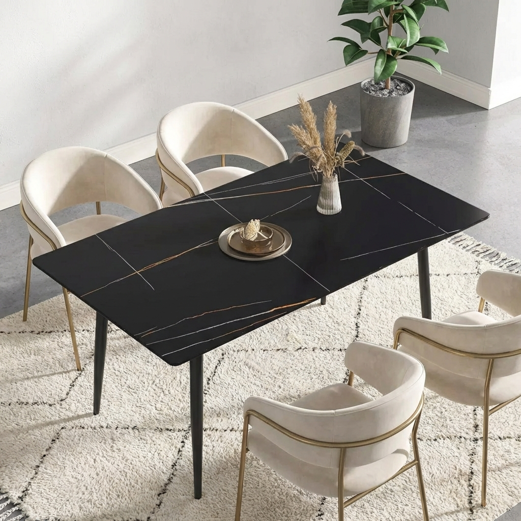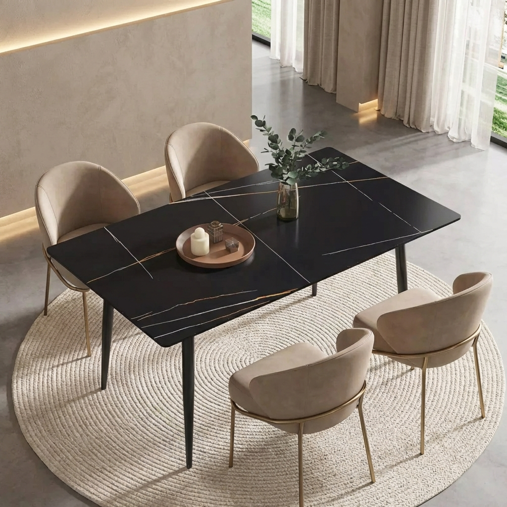 Axis Elegant Dining Tables | 63" Rectangular Black with Ink Black Base