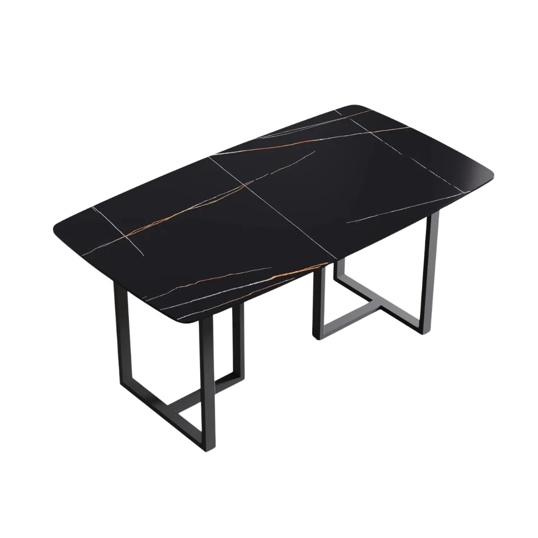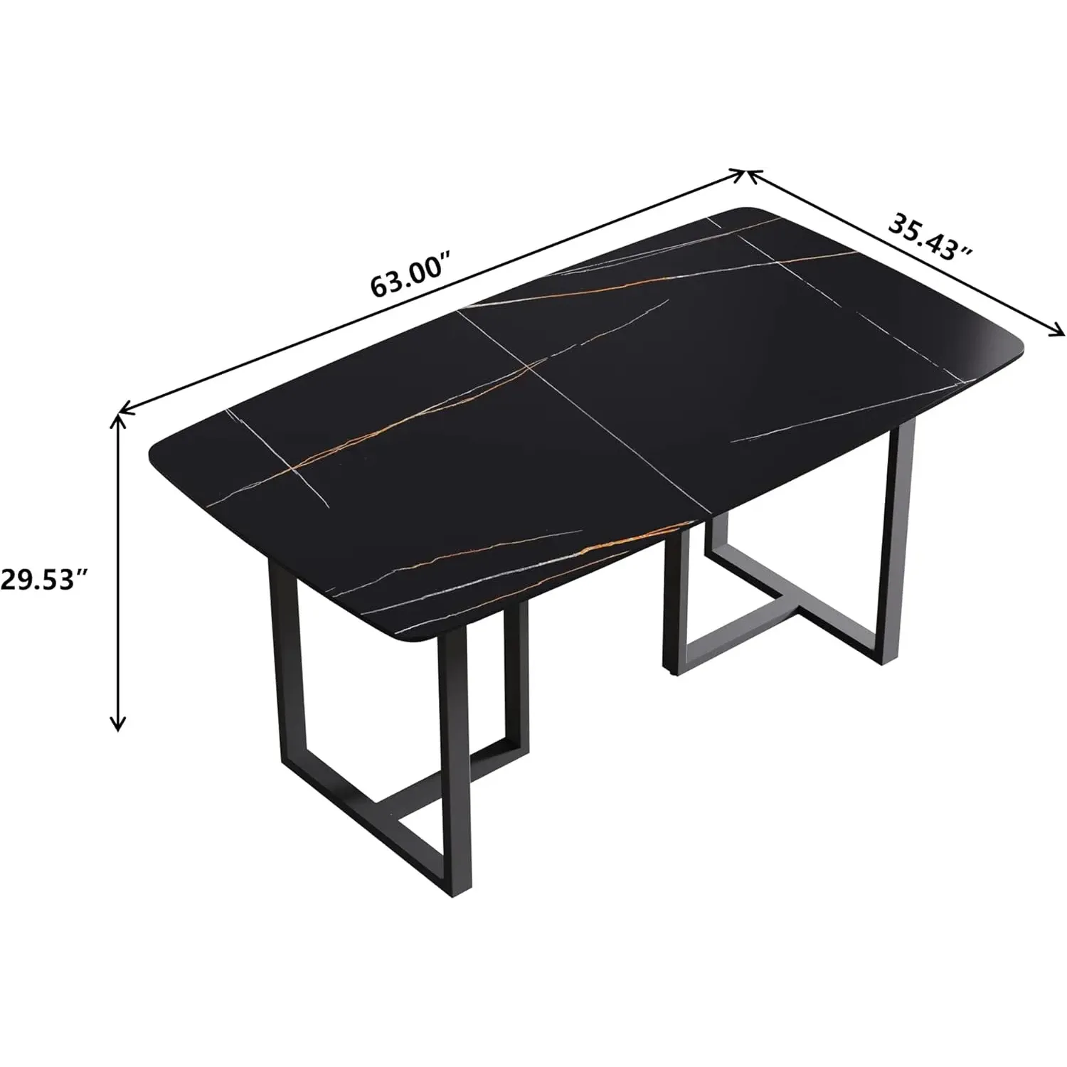 Curvea Modern Dining Table | 63" Rectangular Round Corners Black with Onyx Black Base for 4-6