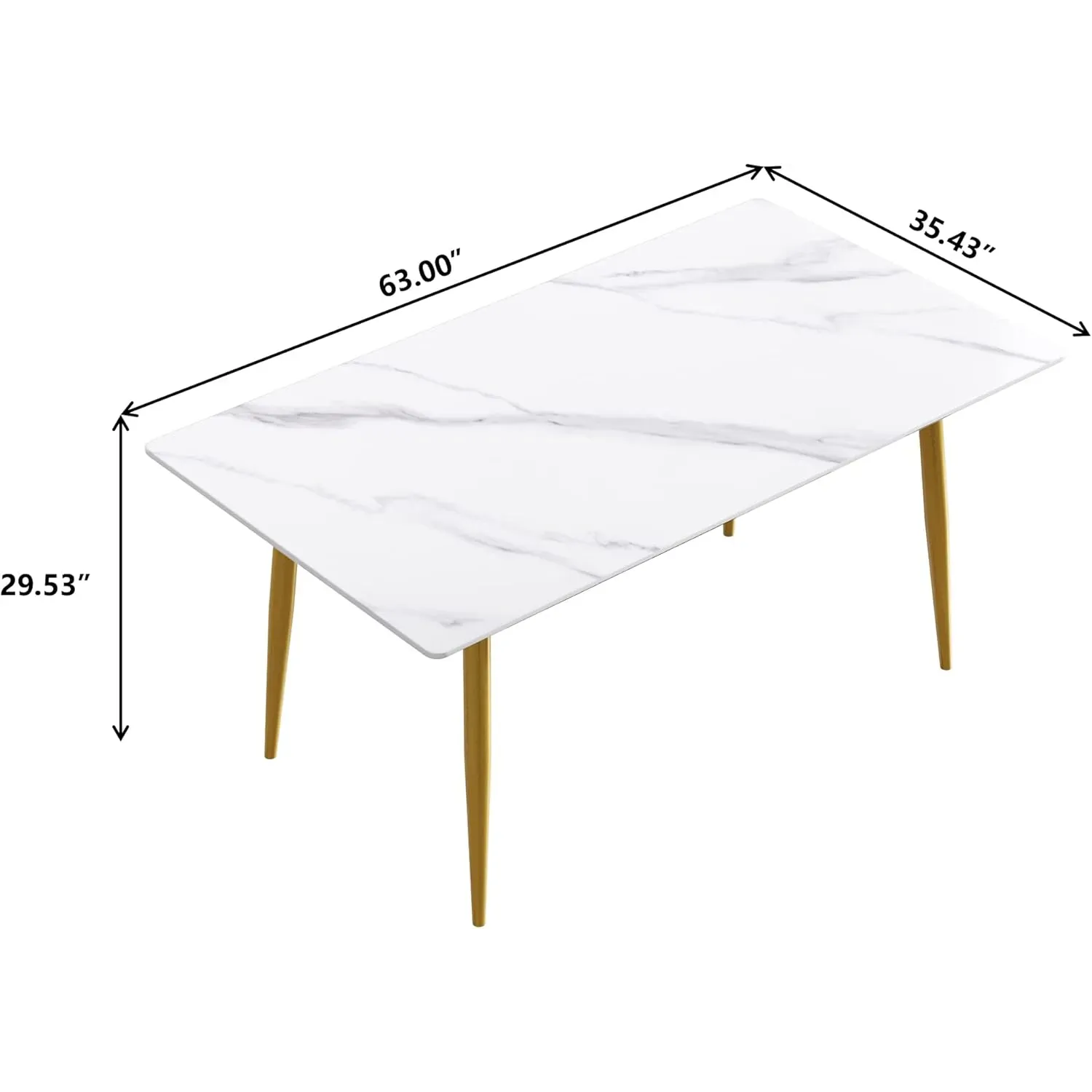 Axis Elegant Dining Tables | 63" Rectangular White with Dusk Gold Base
