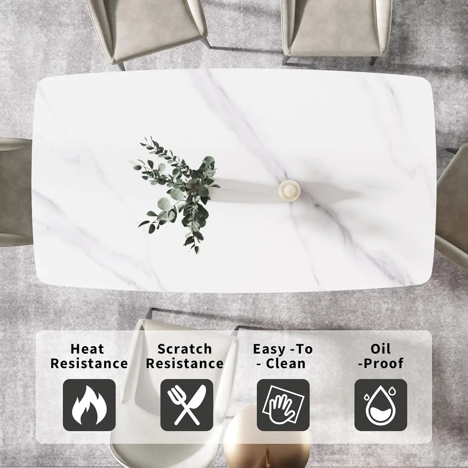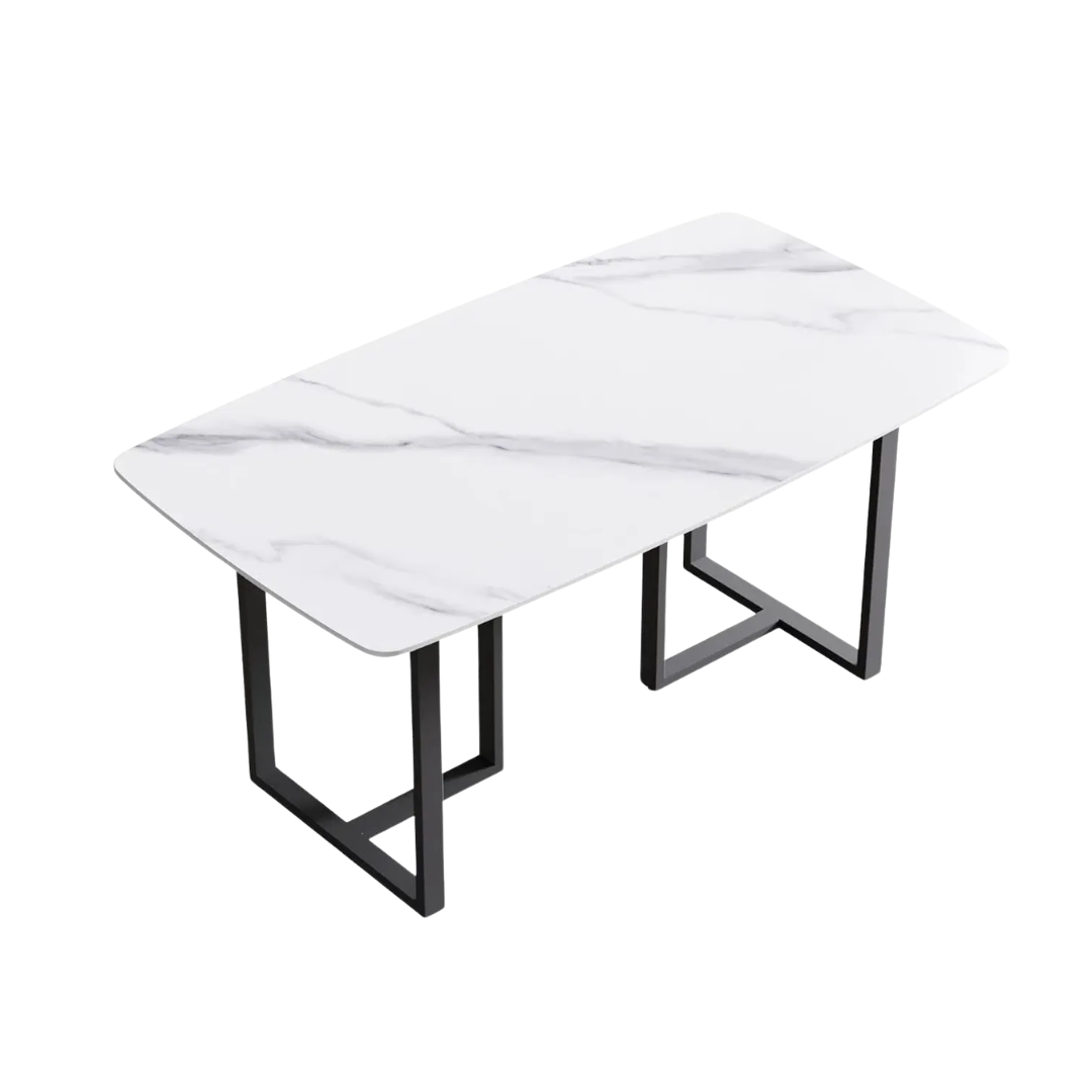 Curvea Elegant Dining Tables | 63" Rectangular Round Corners White with Onyx Black Base for 4-6