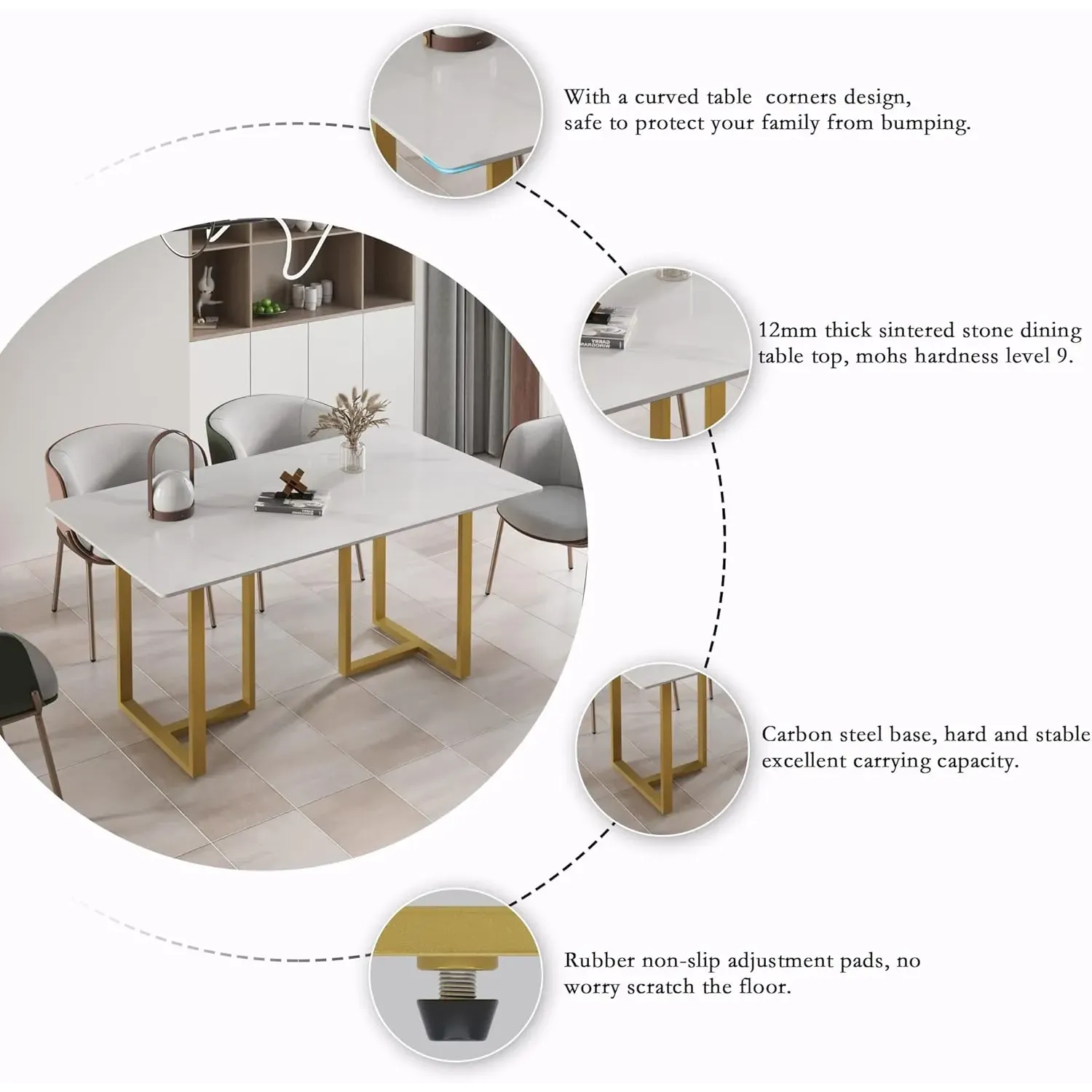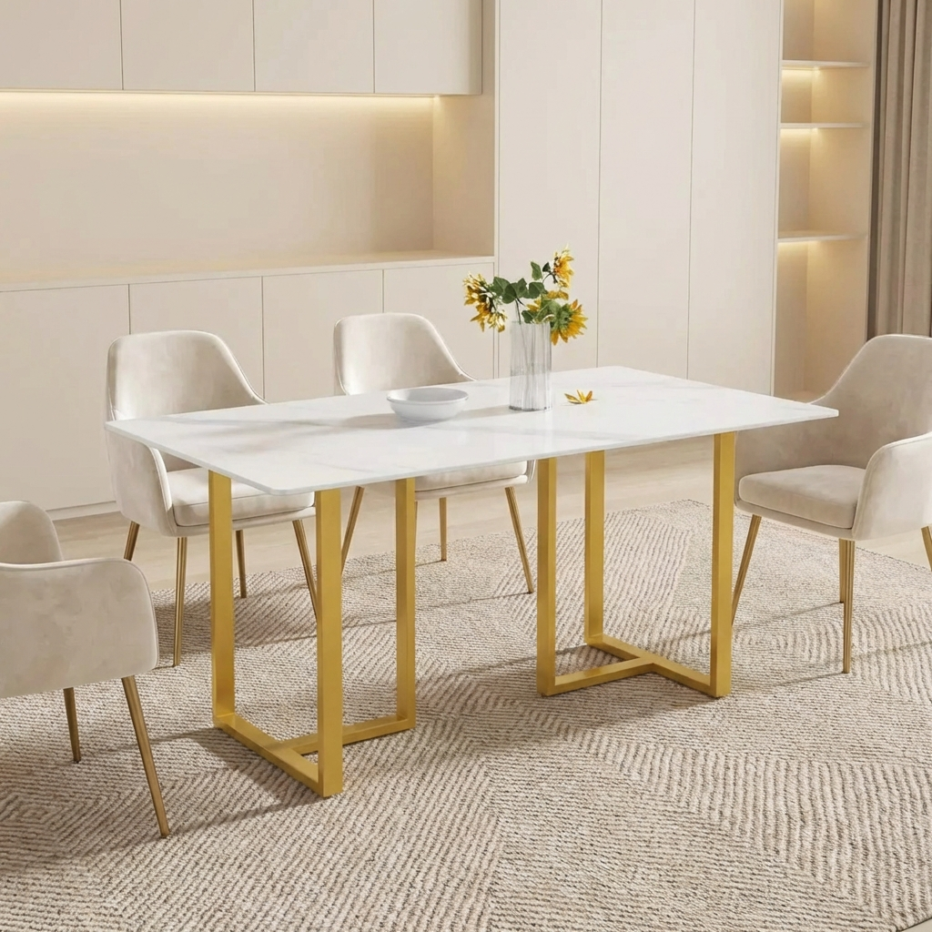Linea Elegant Dining Tables | 63" Rectangular White with Satin Gold Base
