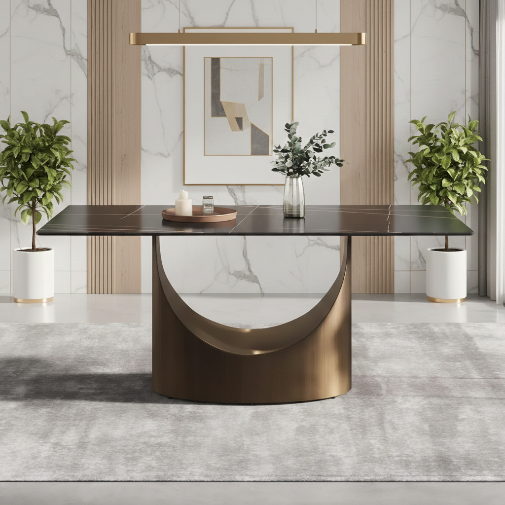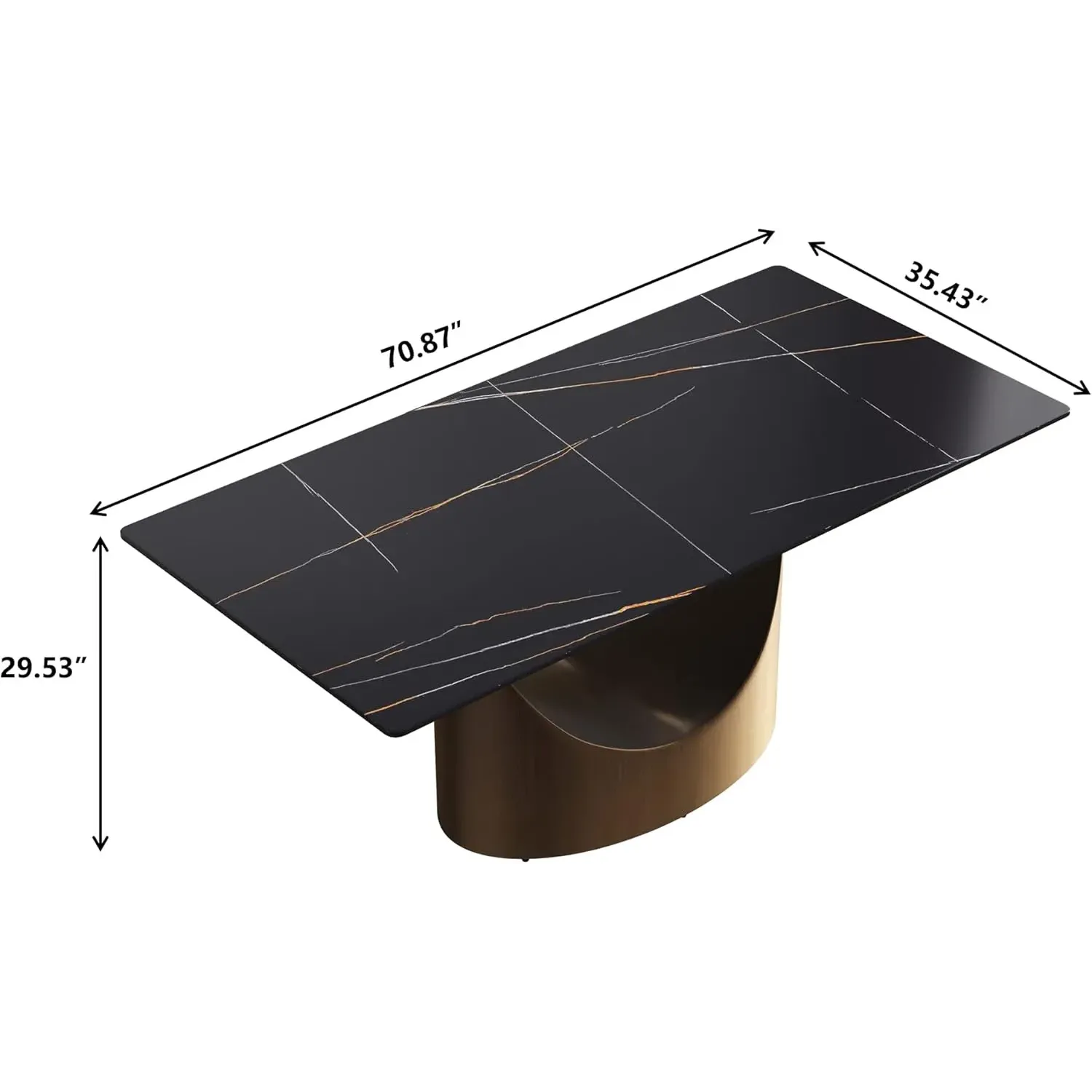 Eclipse Atlas Elegant Dining Tables | 70" Rectangular Black with Dark Gold Base for 6