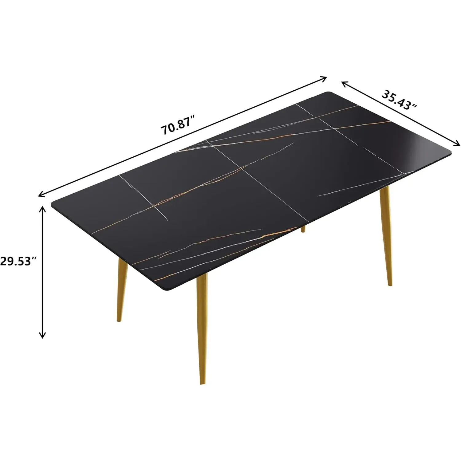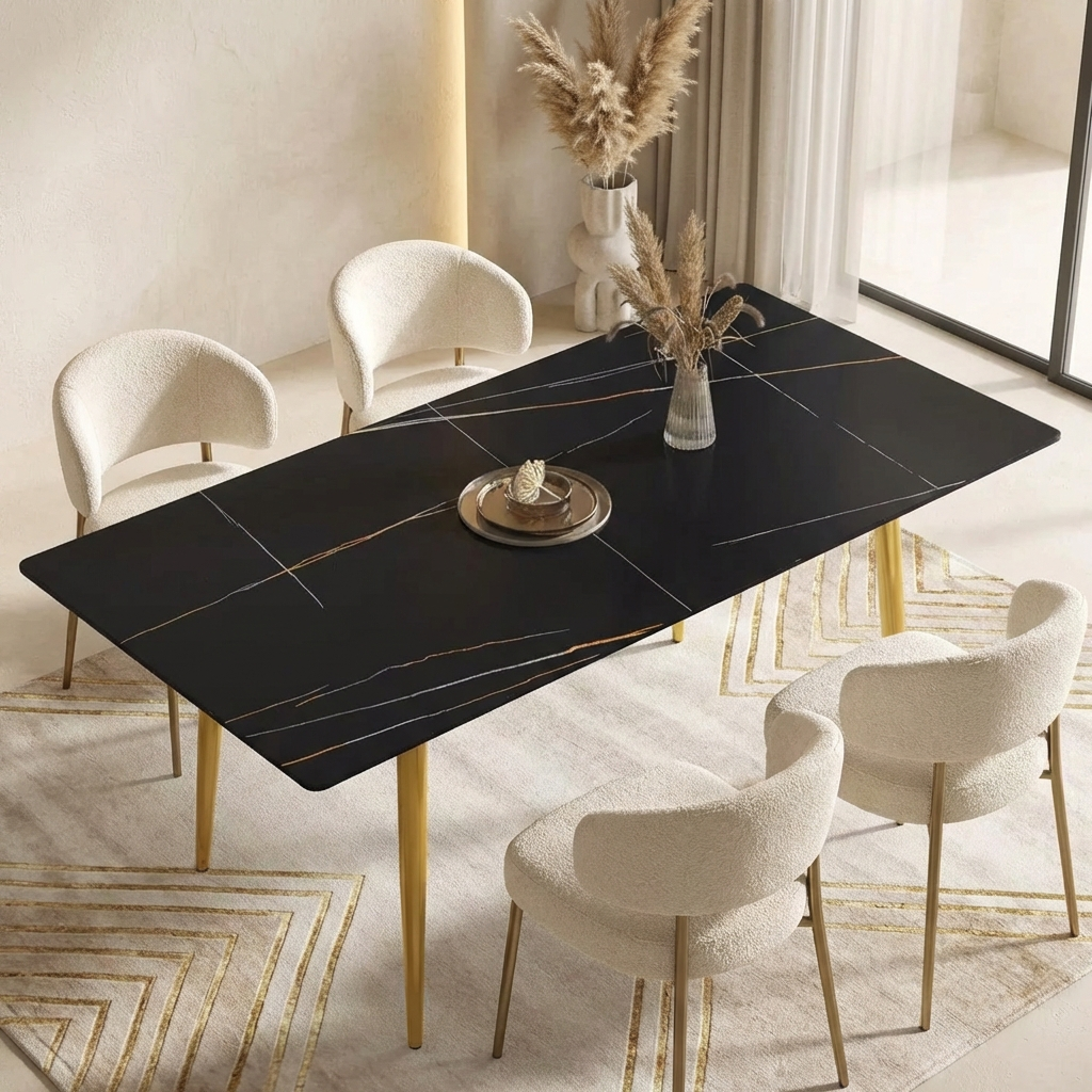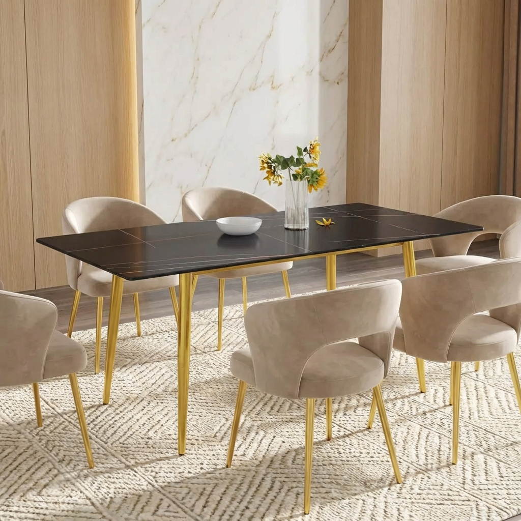 Axis Elegant Dining Tables | 70" Rectangular Black with Dusk Gold Base for 6