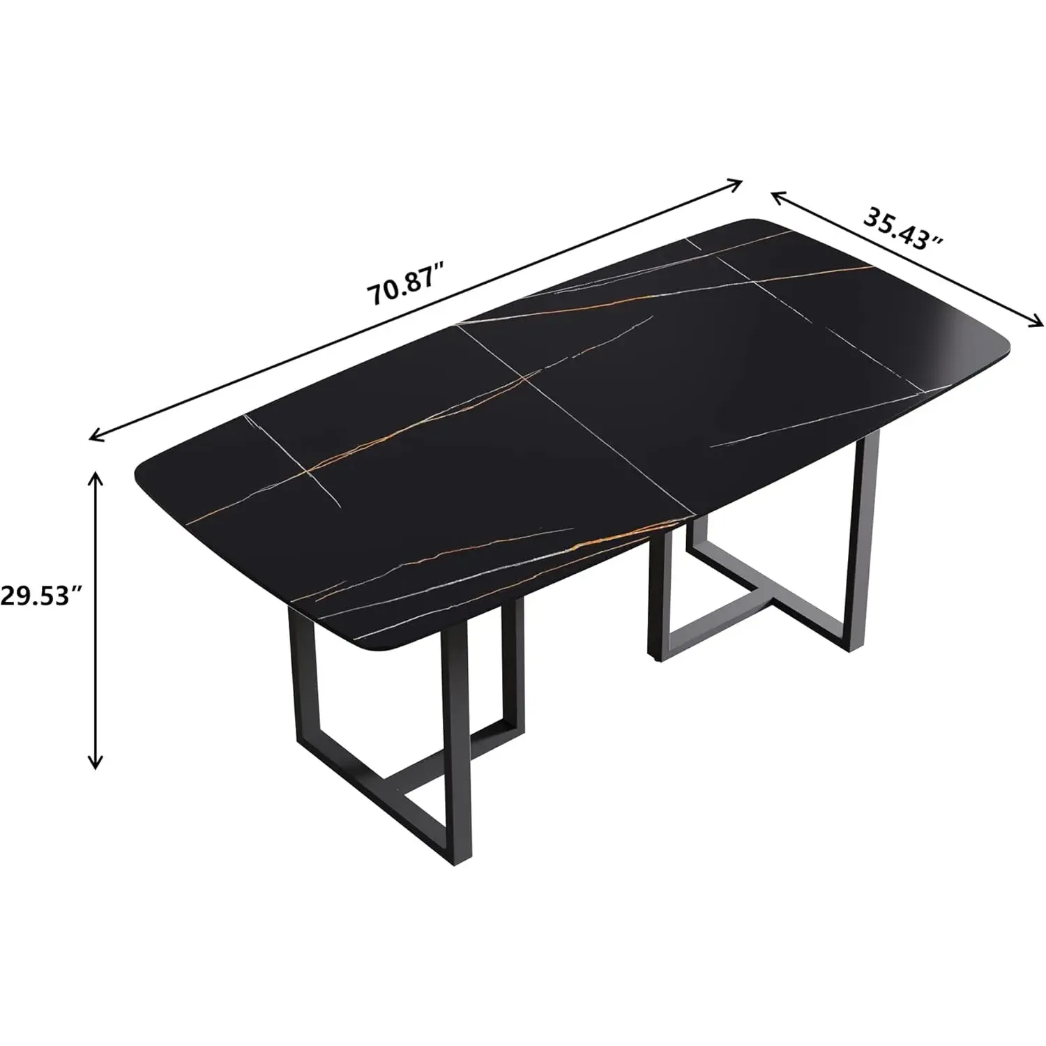 Curvea Modern Dining Table | 70" Rectangular Black with Onyx Black Base for 6-8