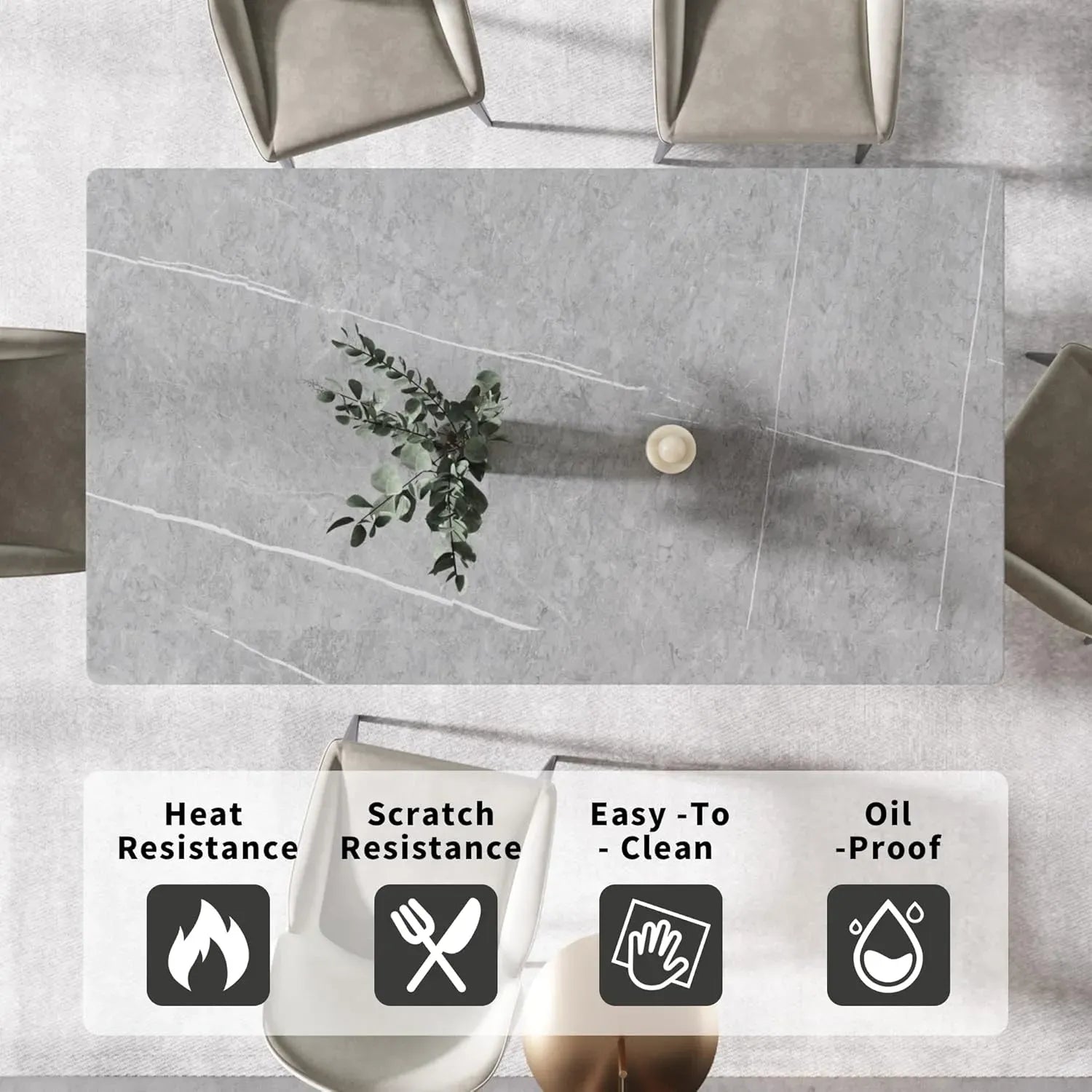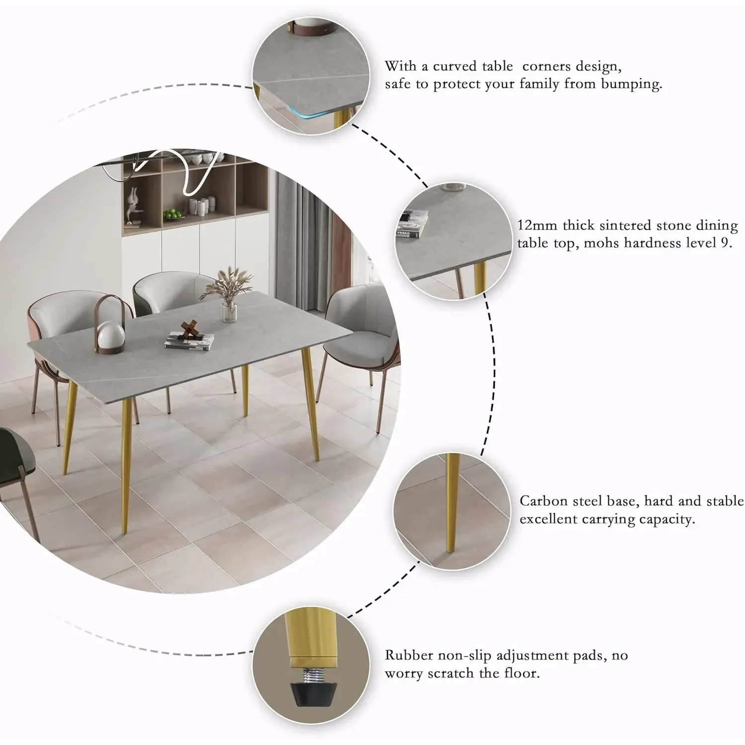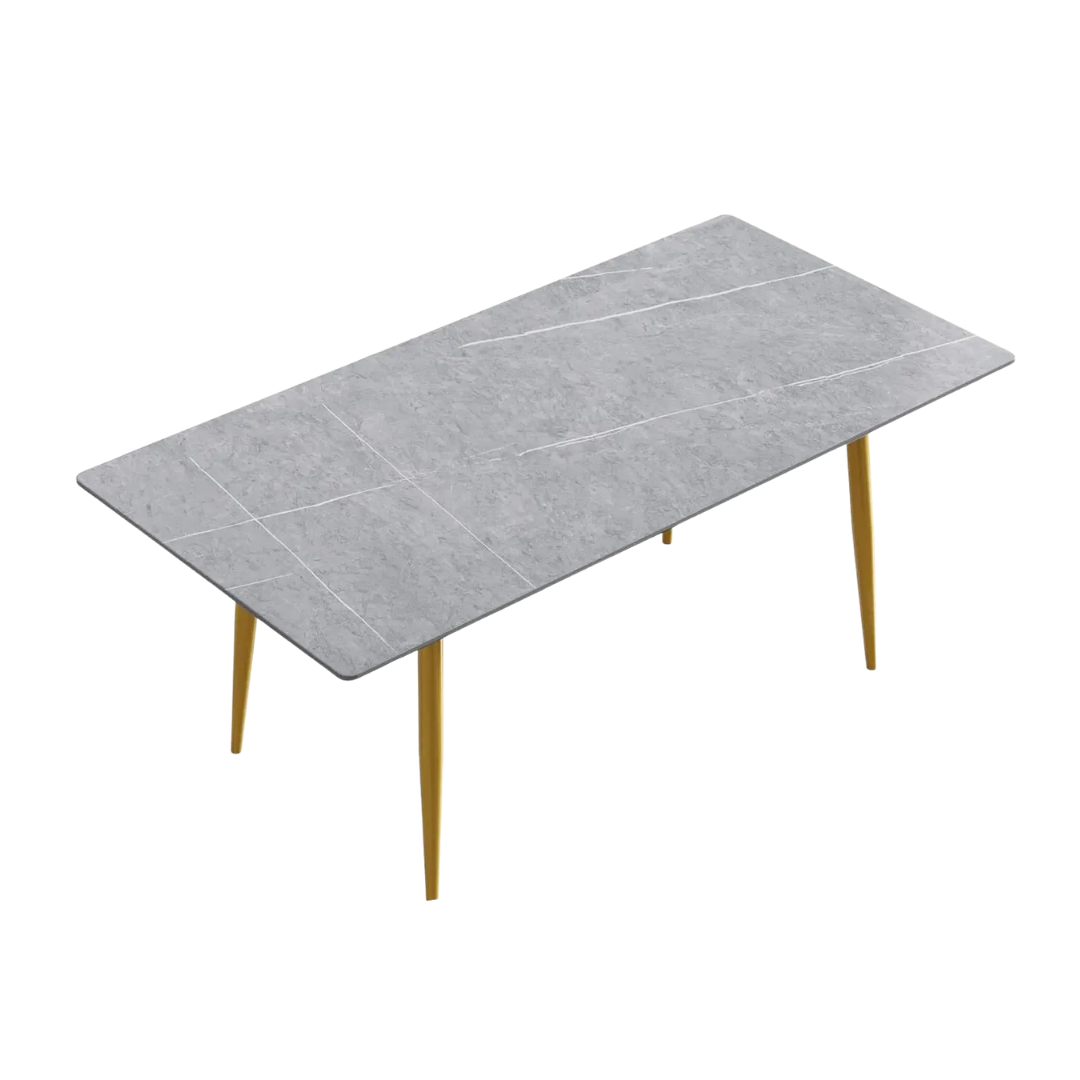 Axis Elegant Dining Tables | 70" Rectangular Gray with Dusk Gold Base for 6