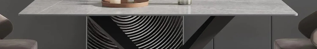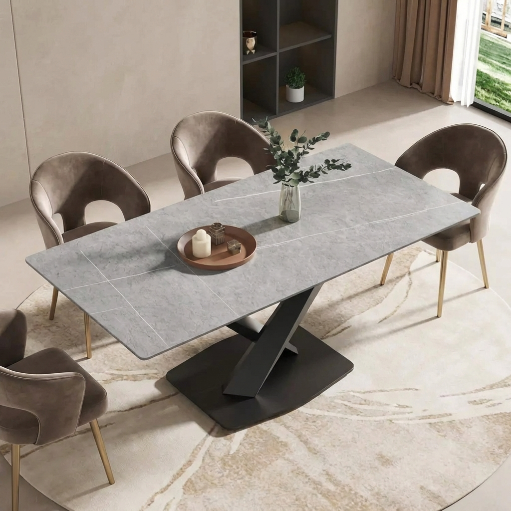 Marbela Atlas Dining Table | 70" Rectangular Gray Stone Dining Table | Jet Black Base – 6-Seater Contemporary Style