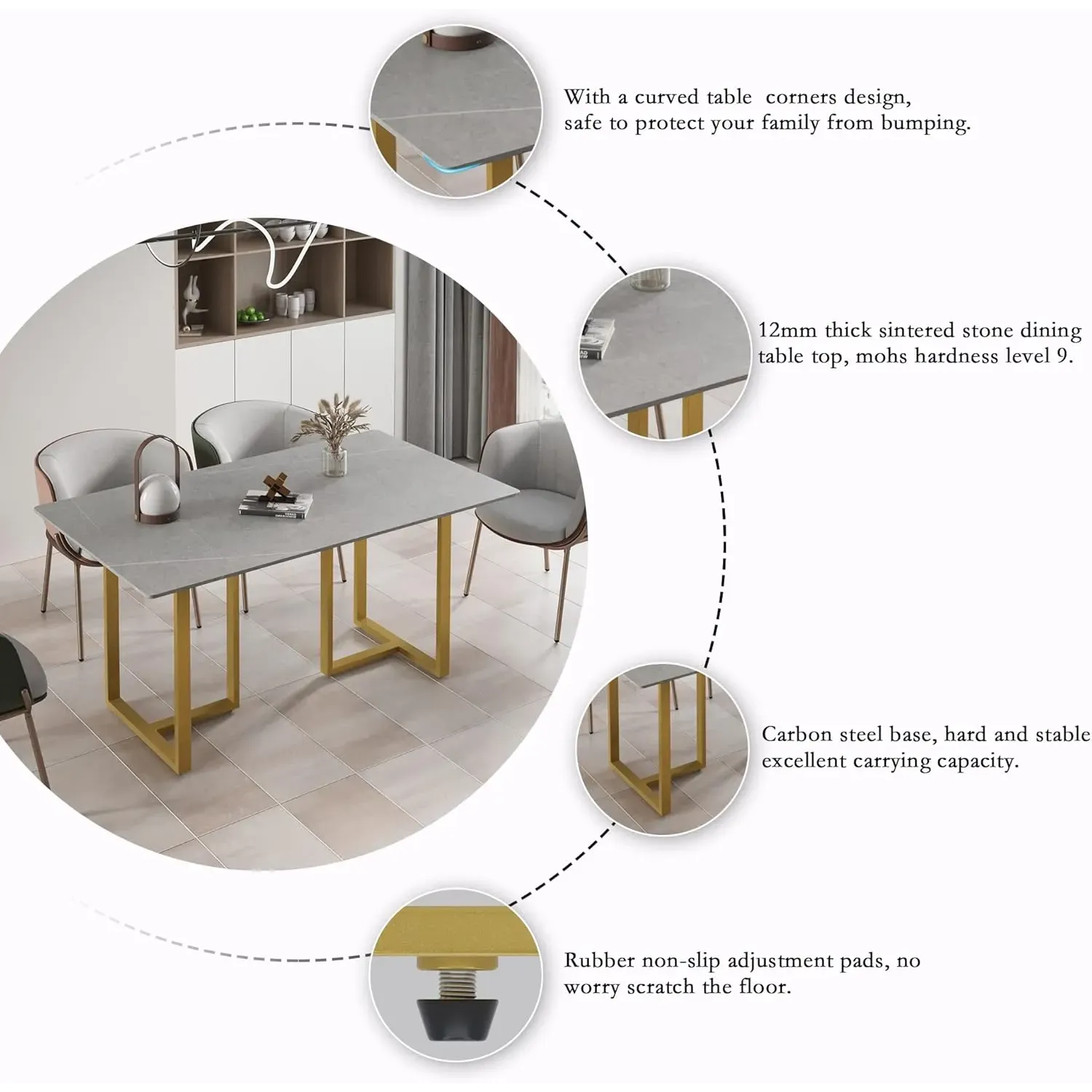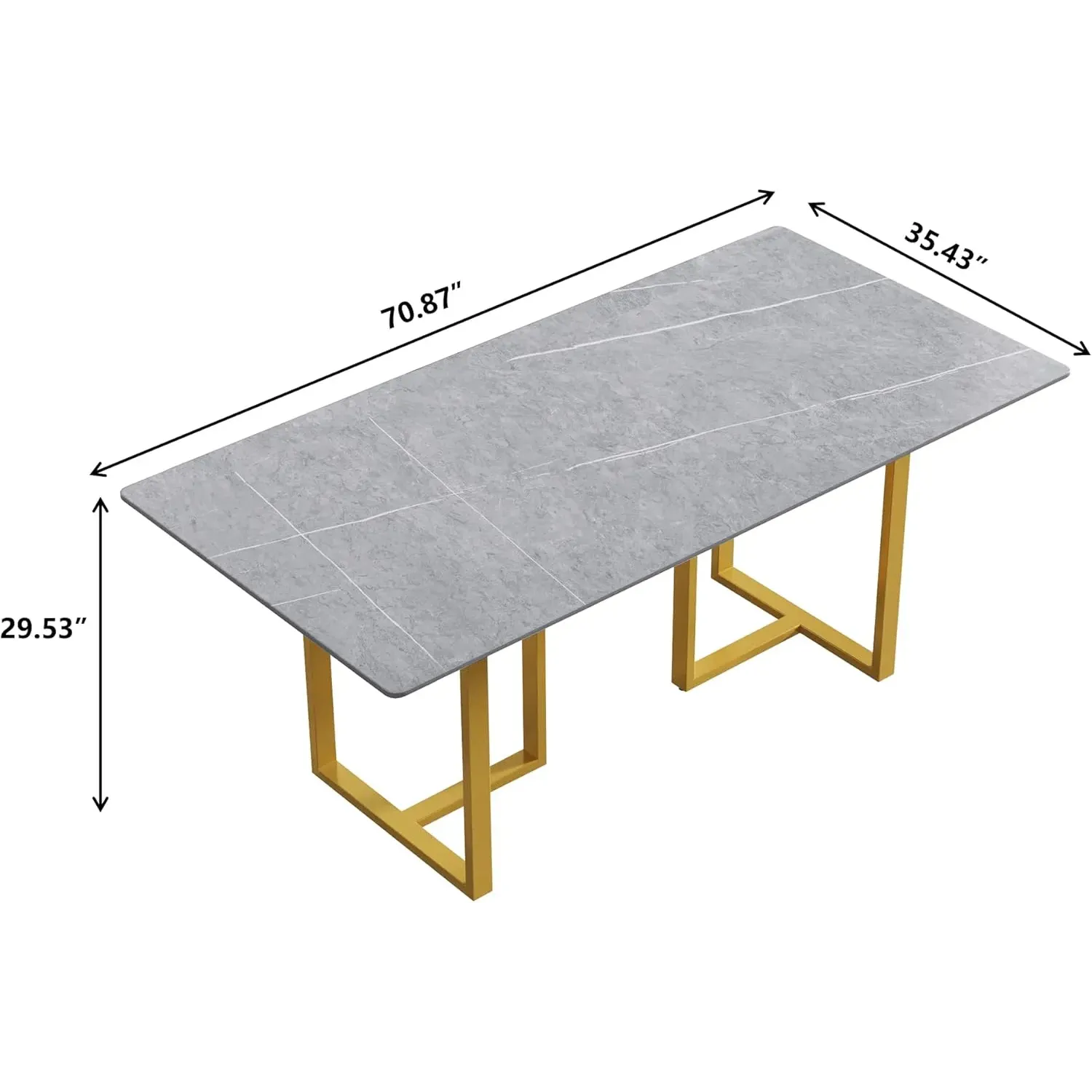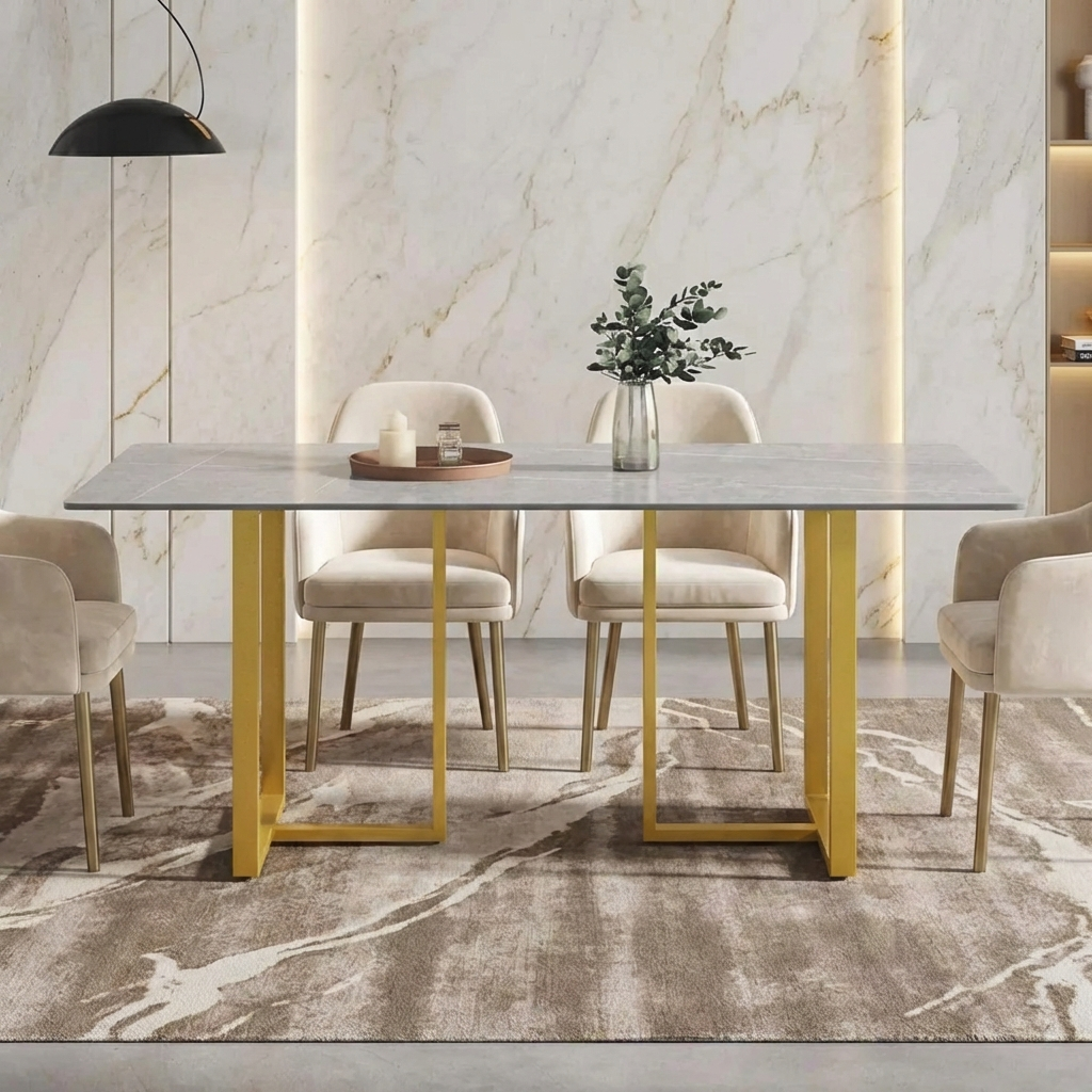 Linea Modern 70" Gray Dining Table – Rectangular with Satin-Gold Base, Seats 6 People