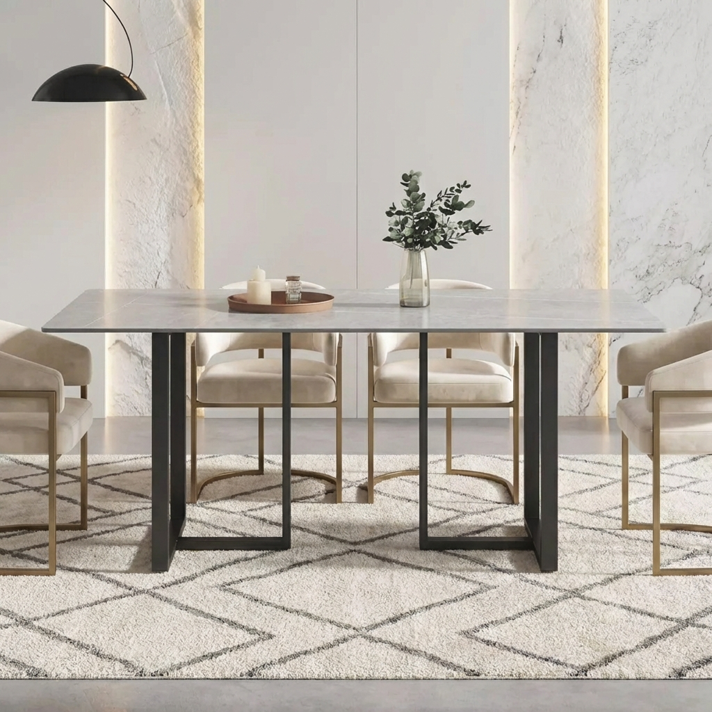 Linea Modern 70" Gray Dining Table – Rectangular with Onyx Black Base, Seats 6 People