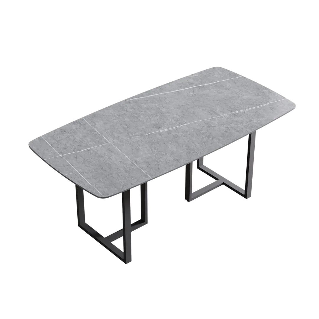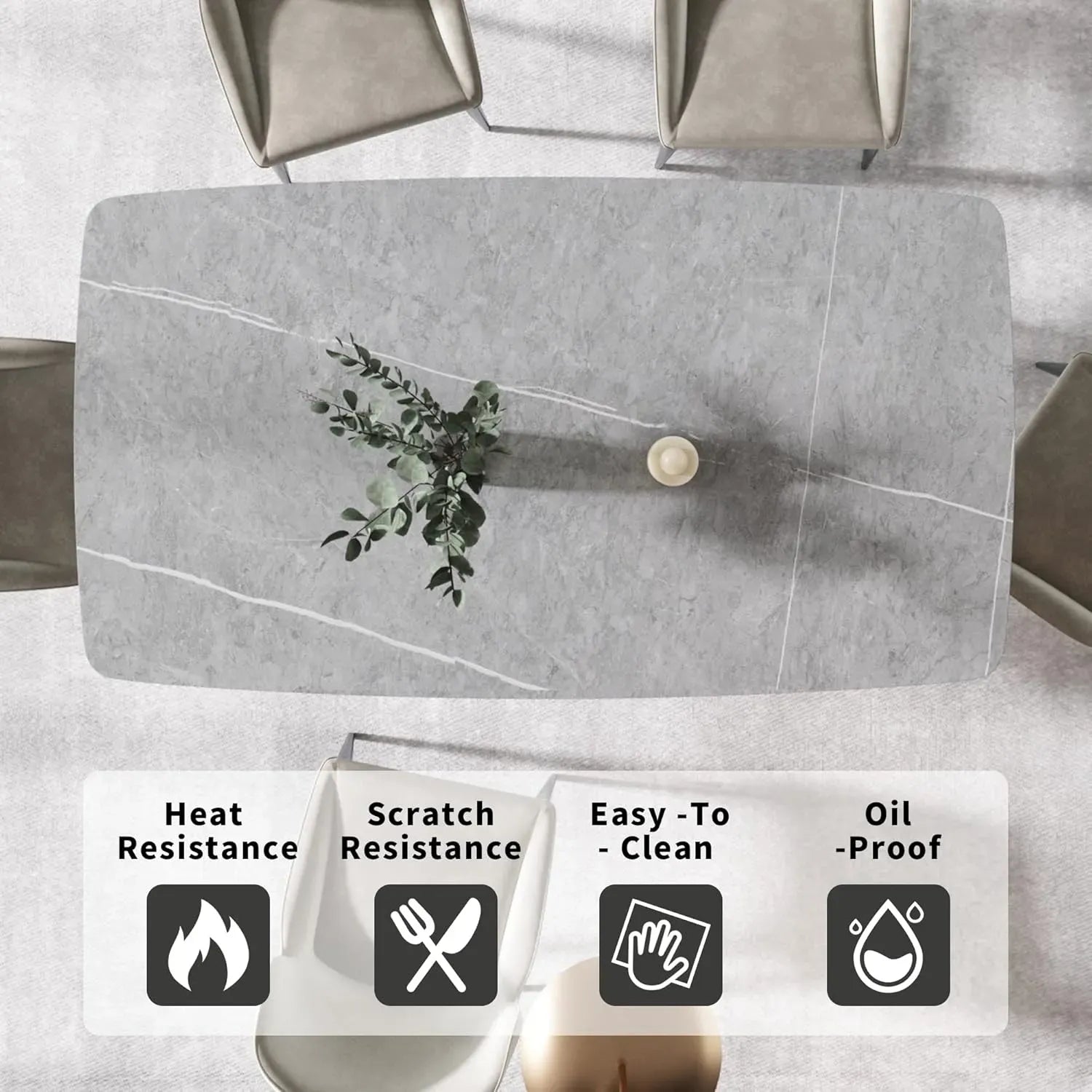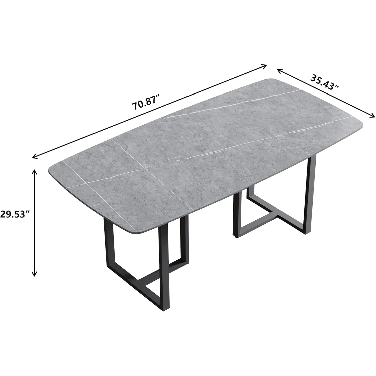 Curvea Modern Elegant Dining Tables | 70" Rectangular Grey with Onyx Black Base for 6-8