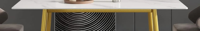 Axis Dining Tables | 70" Rectangular White with Dusk Gold Base for 6