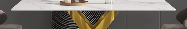 Calvara Atlas Elegant Dining Tables | 70" Rectangular White with Luxe Gold Base for 6