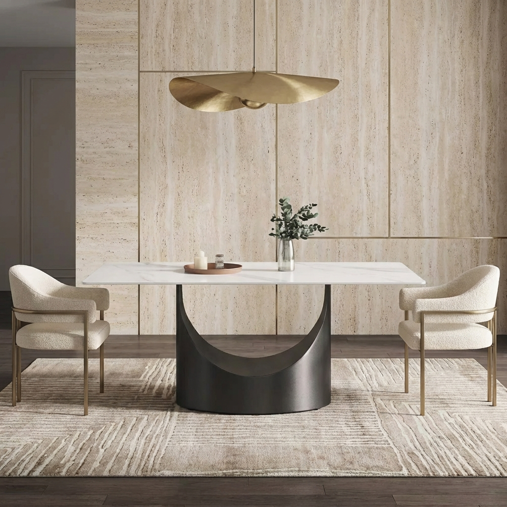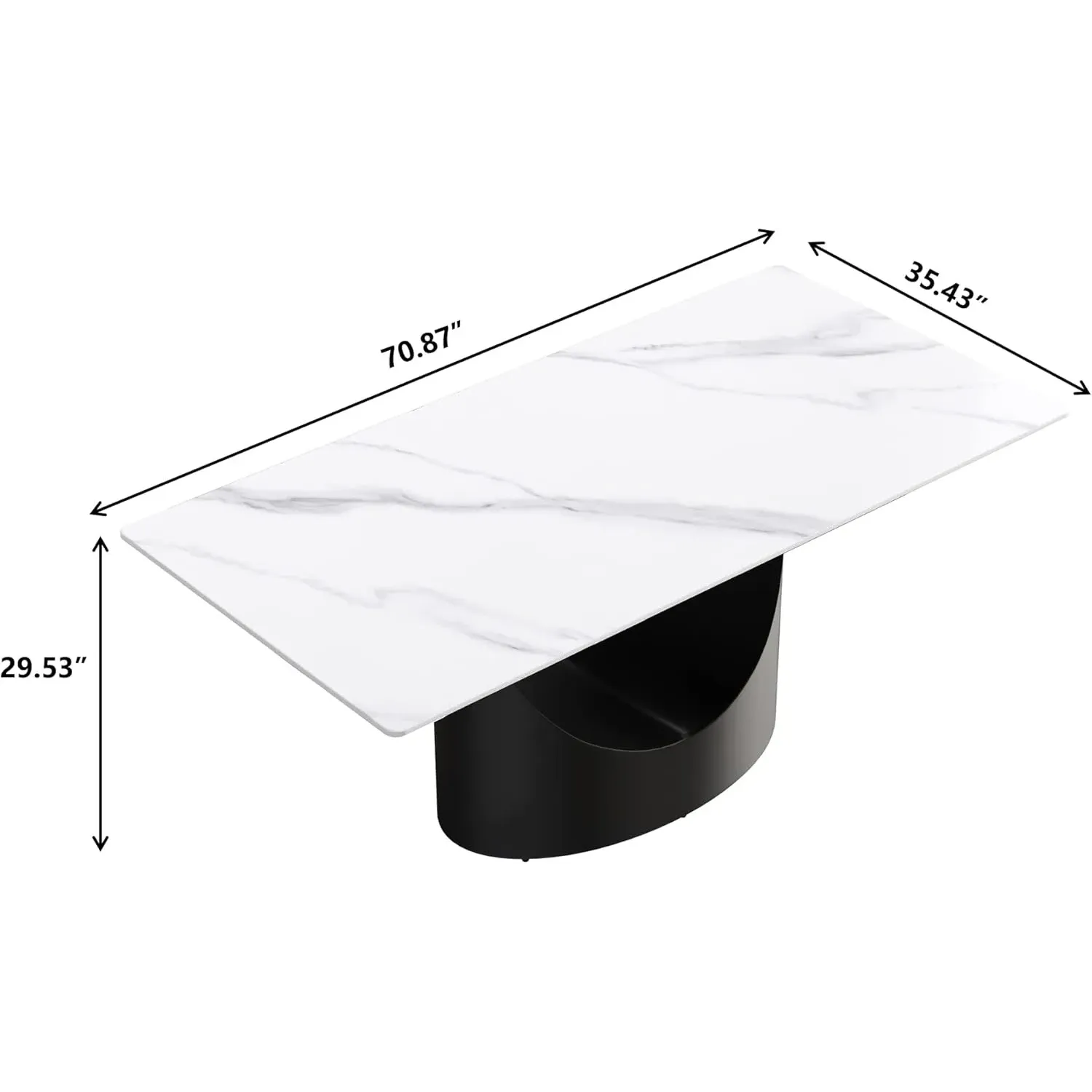 Eclipse Elegant Dining Tables | 70" Rectangular White with Matte Black Base for 6