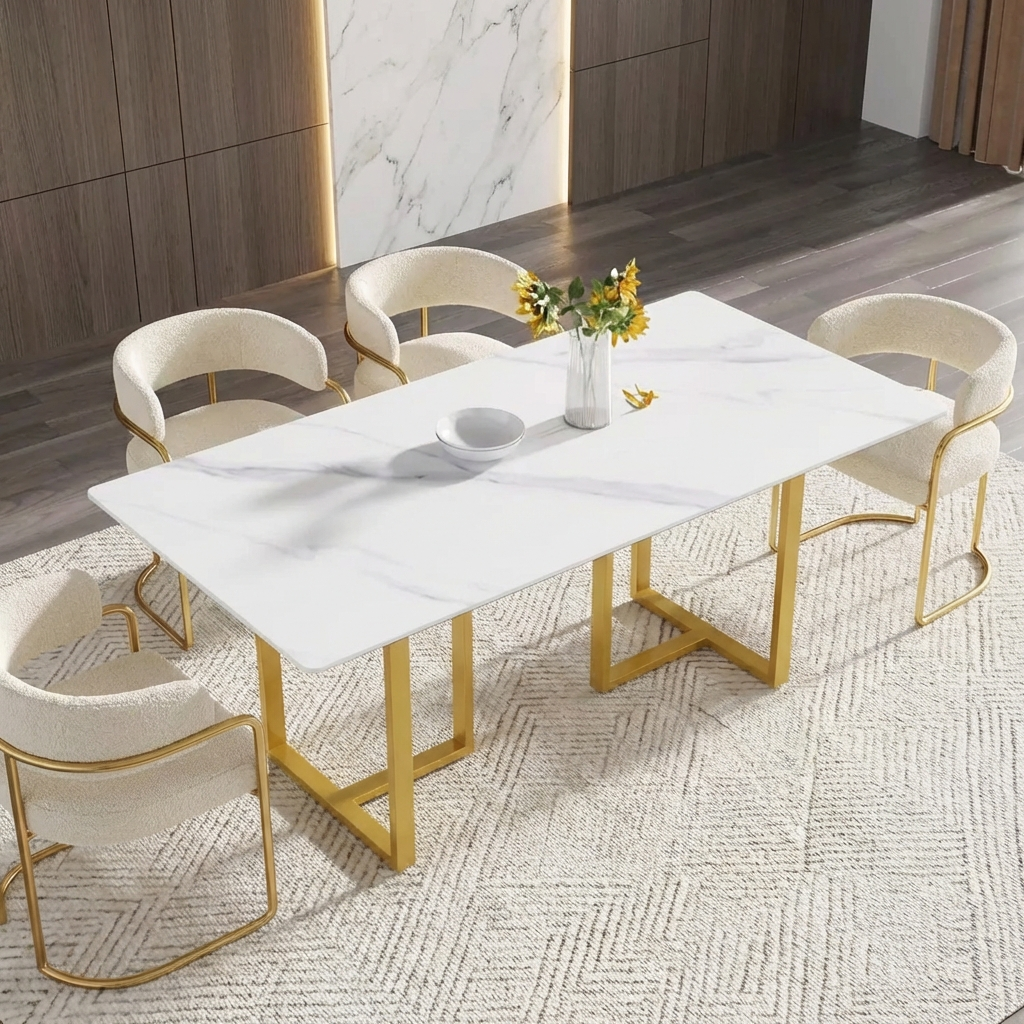 Linea Modern 70" White Dining Table – Rectangular with Satin-Gold Base, Seats 6 People