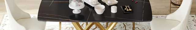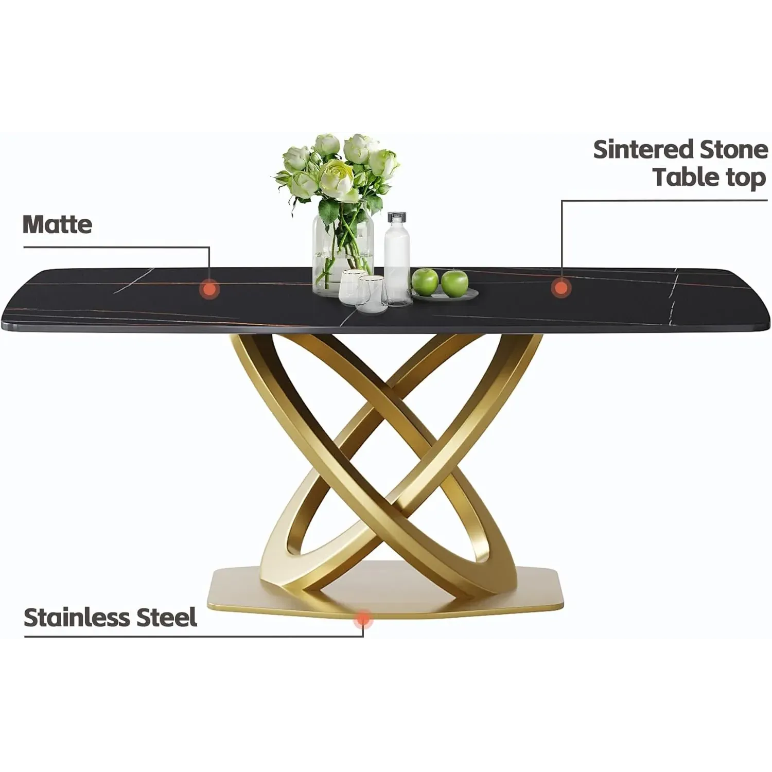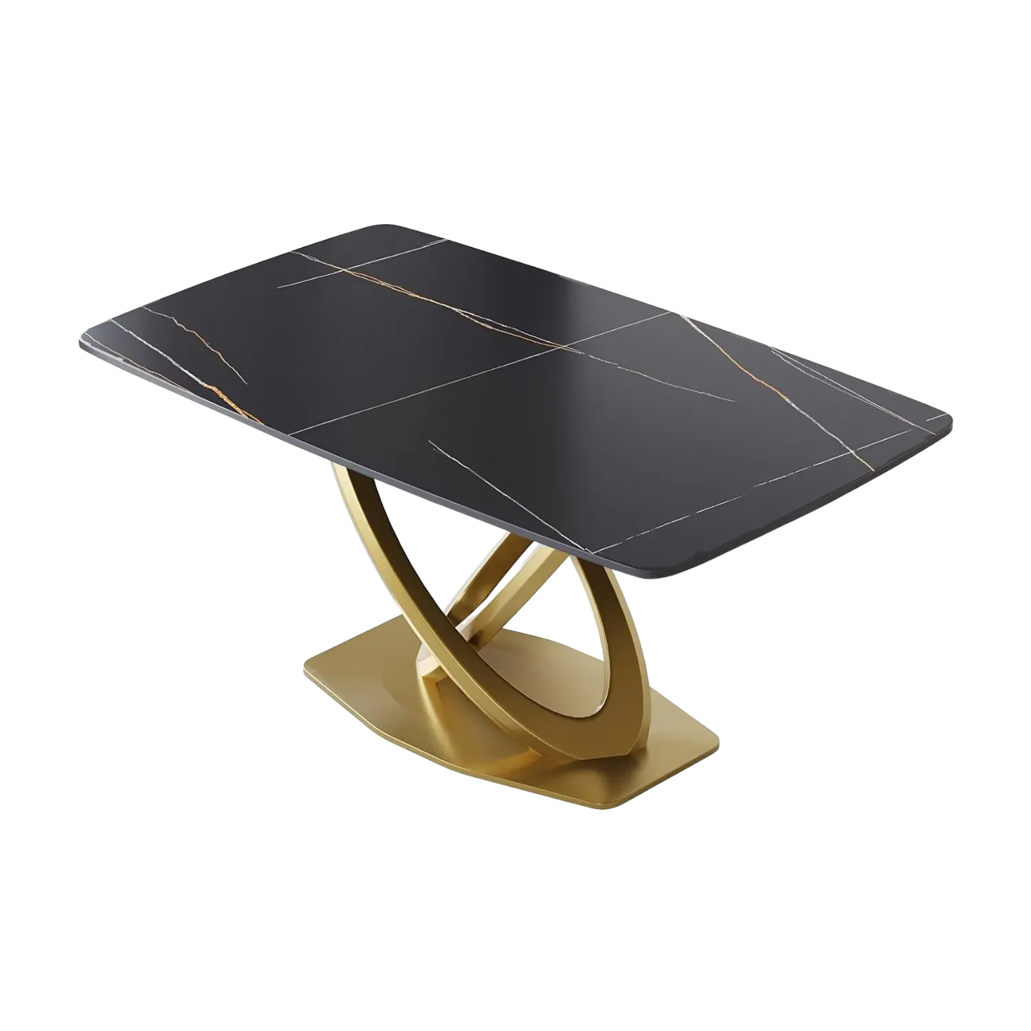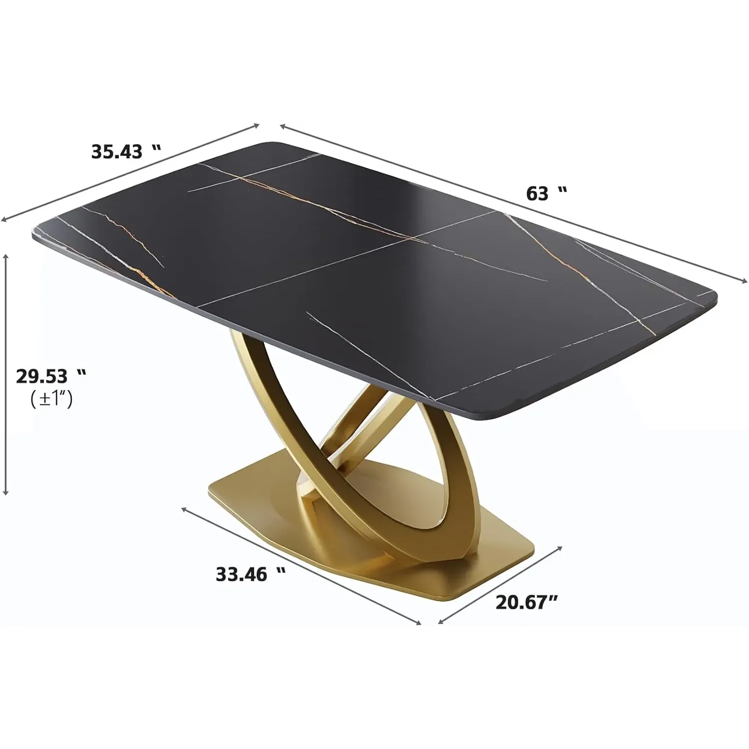 Cosmo Opulent Dining Tables | 63" Rectangular Black with Luxe Gold Base for 6