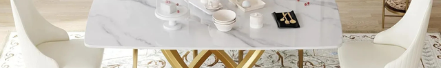 Cosmo Opulent Dining Tables | 63" Rectangular White with Luxe Gold Base for 6