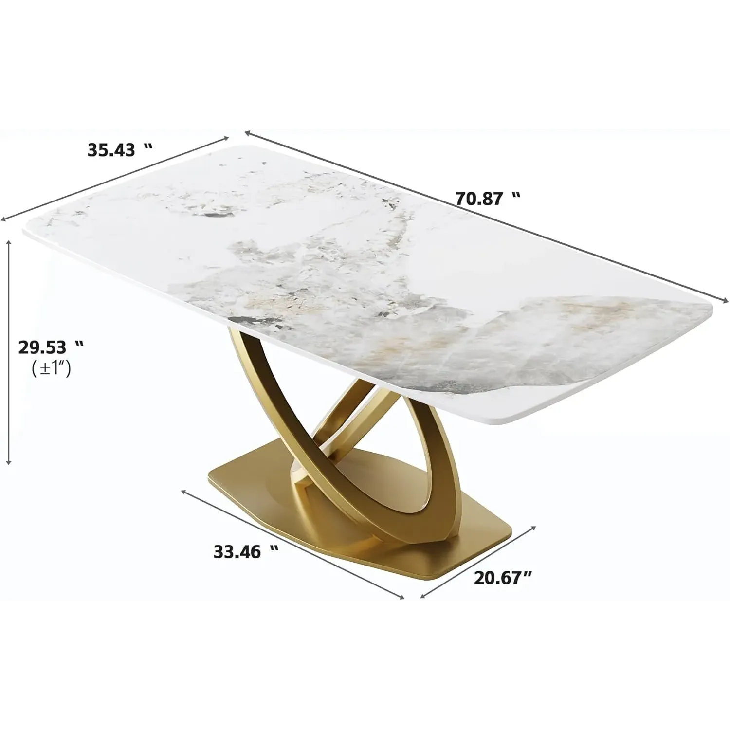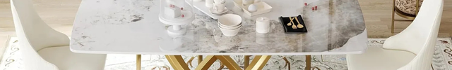 Cosmo Opulent Dining Tables | 70" Rectangular Antique White with Luxe Gold Base for 8