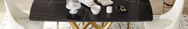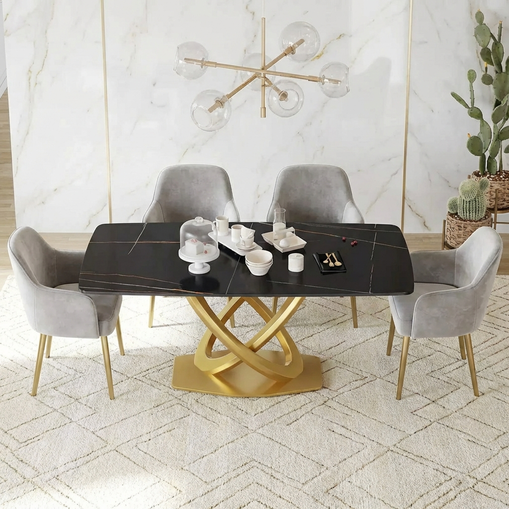 Cosmo Opulent Dining Tables | 70" Rectangular Black with Luxe Gold Base for 8