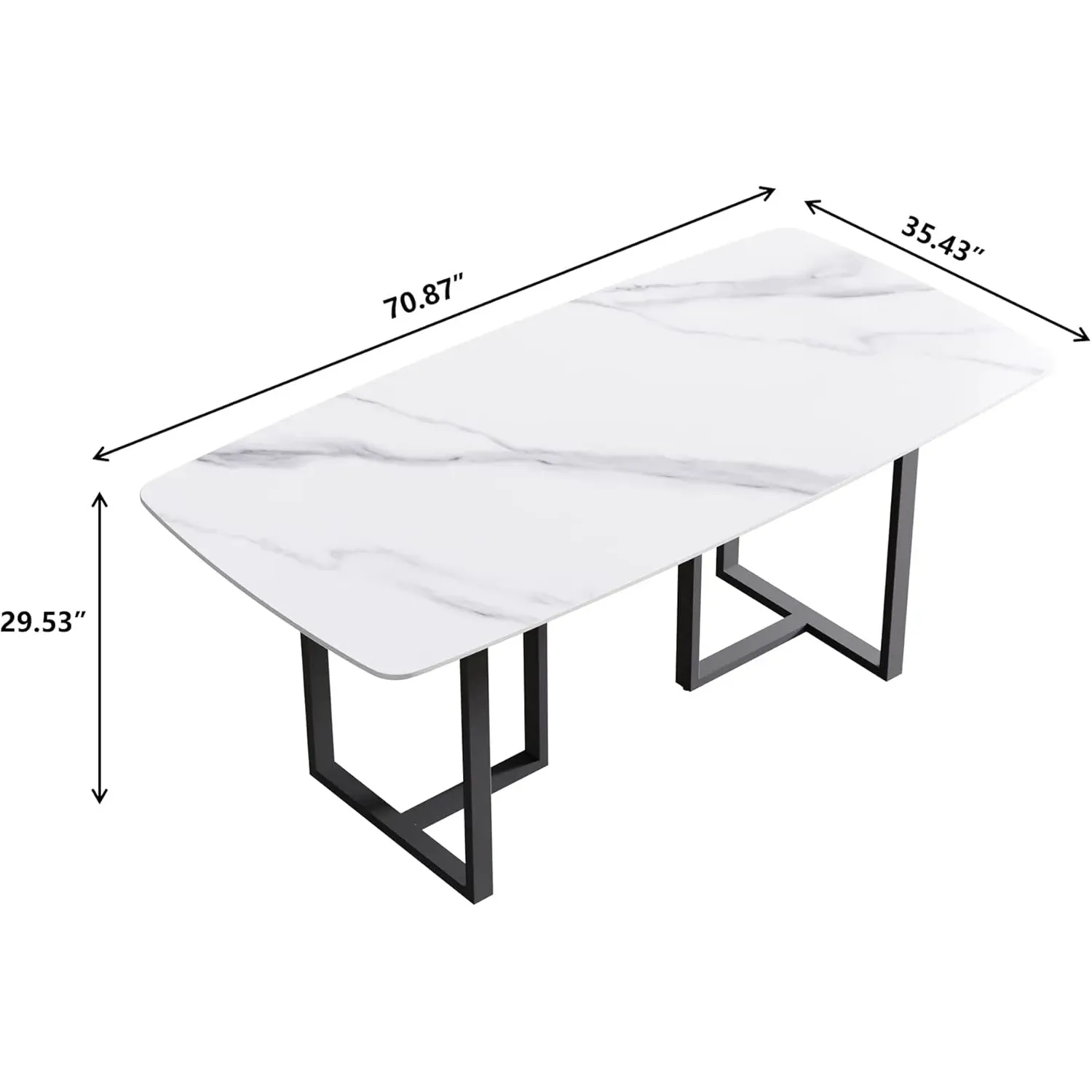 Curvea Elegant Dining Tables | 70" Rectangular White with Onyx Black Base for 6-8