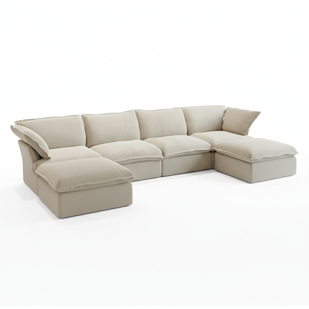 Solenza Lounge | 162" Cloud Modular U-Shape + 2 Ottomans | Washable Sofa