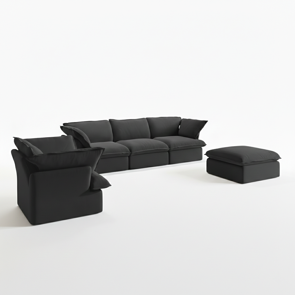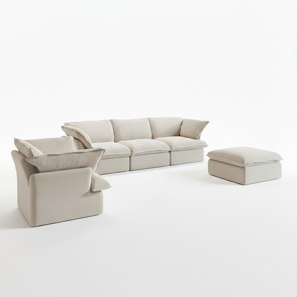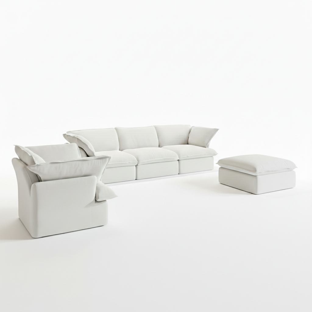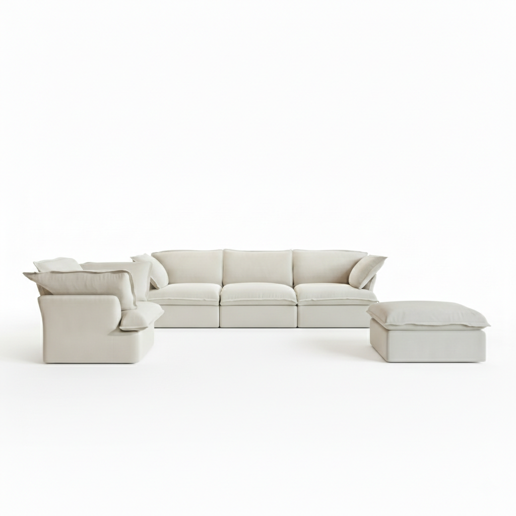 Solenza Lounge | 4-Seater Cloud Modular 3-Piece Sectional Sofa Set - Washable Linen Covers Sofa