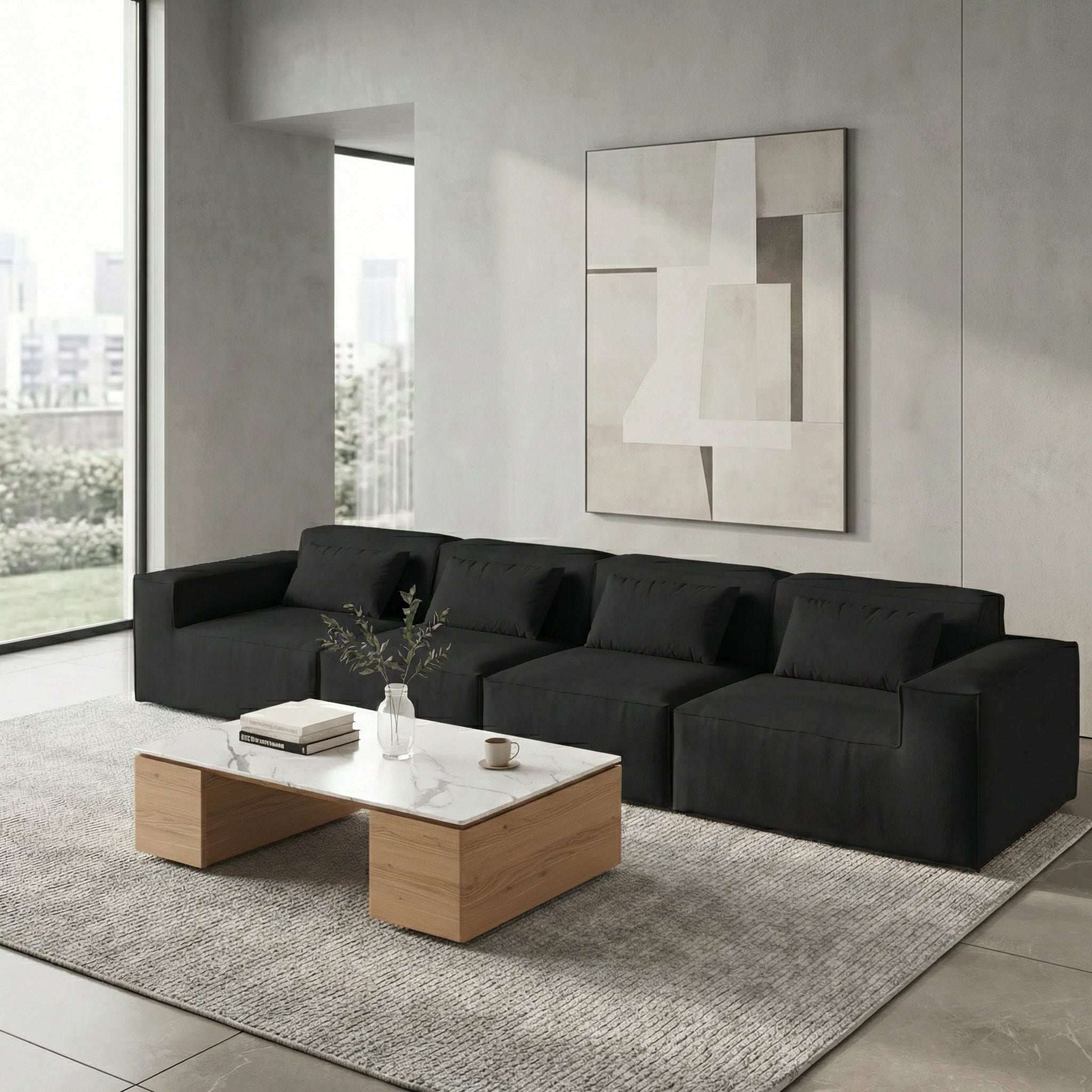 Solenza Mellow | 150" XL Cloud Modular 4-Seater Sofa | Washable Velvet Sofa