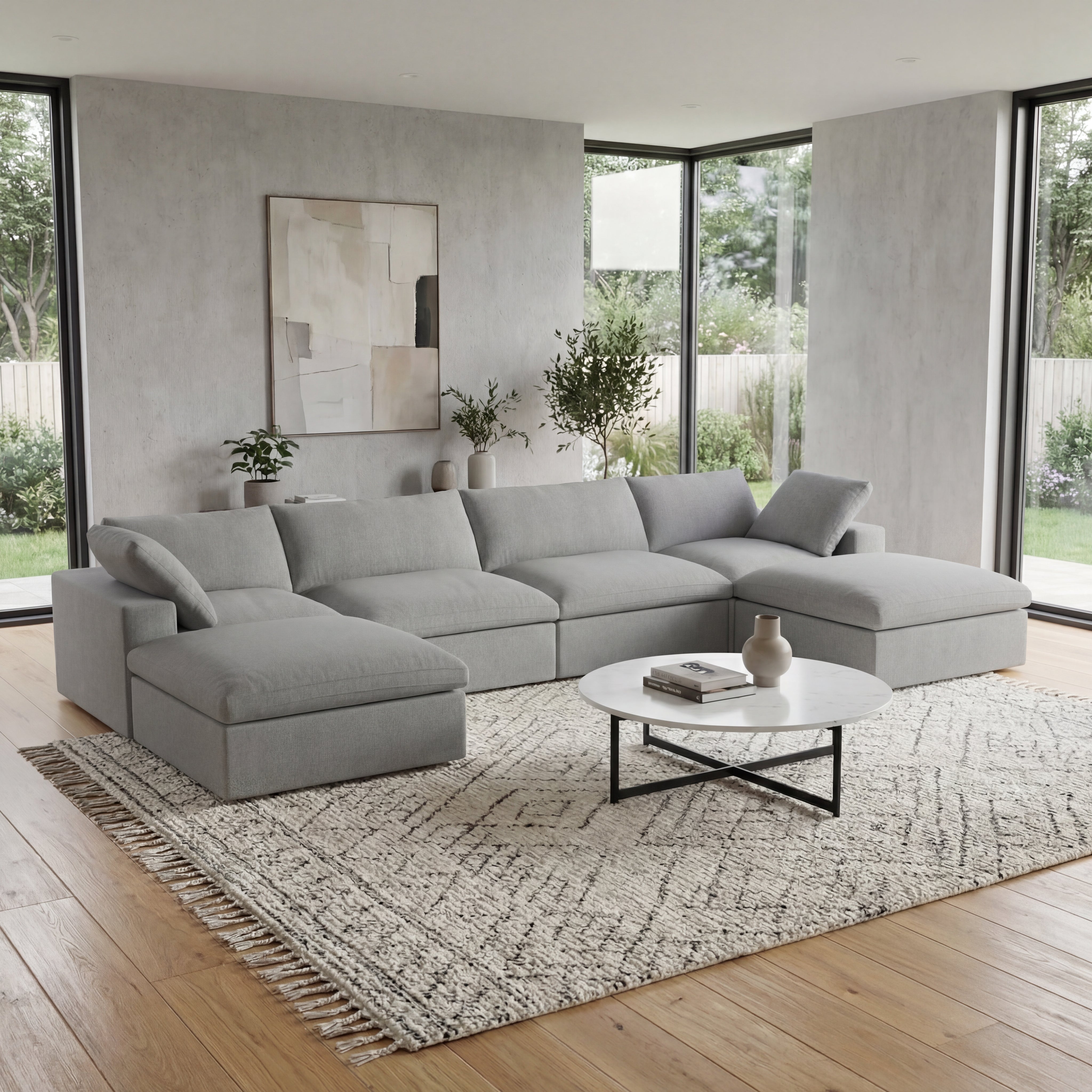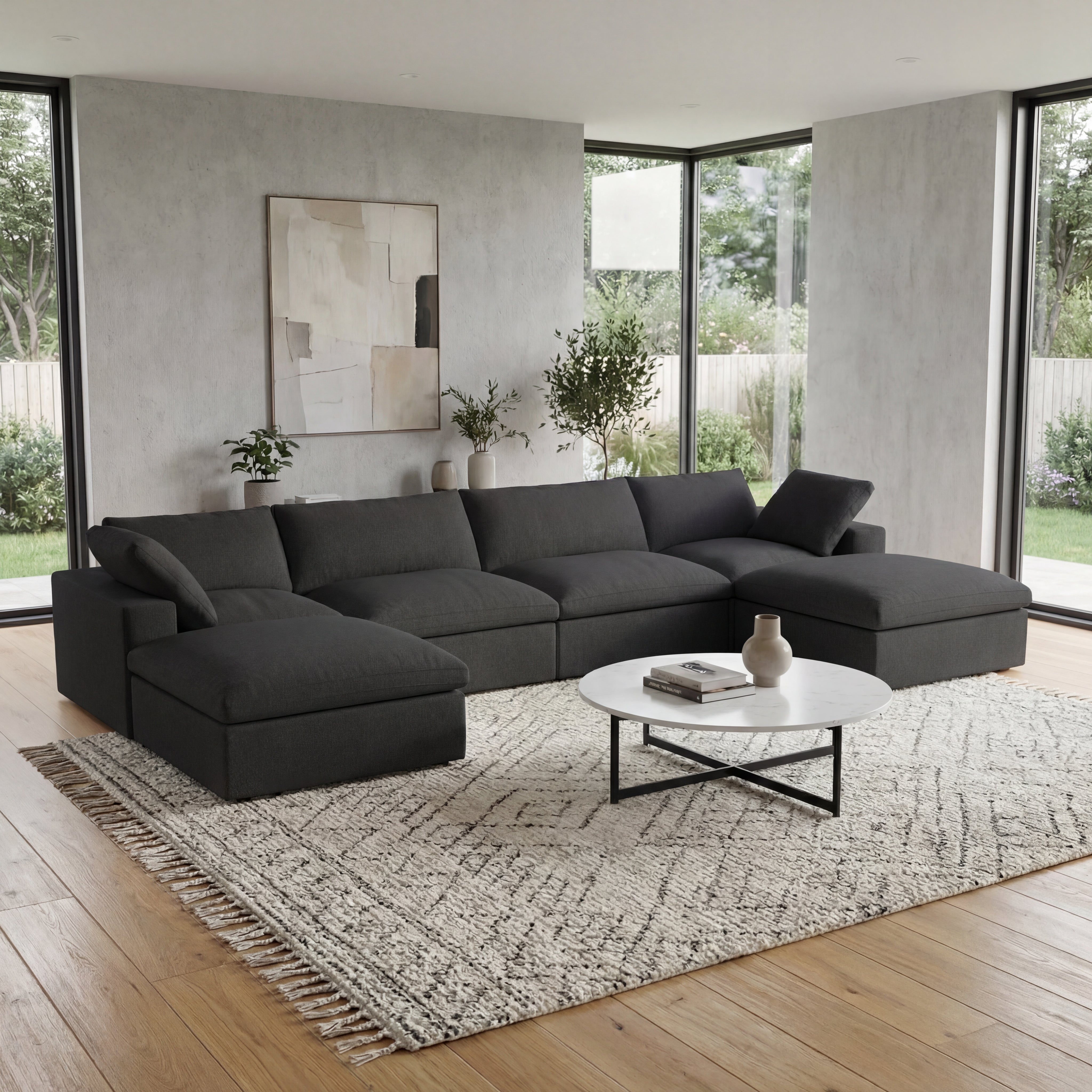 Solenza Nuvia | 160" U-Shaped Cloud Modular Sofa with 2 Ottomans | Washable