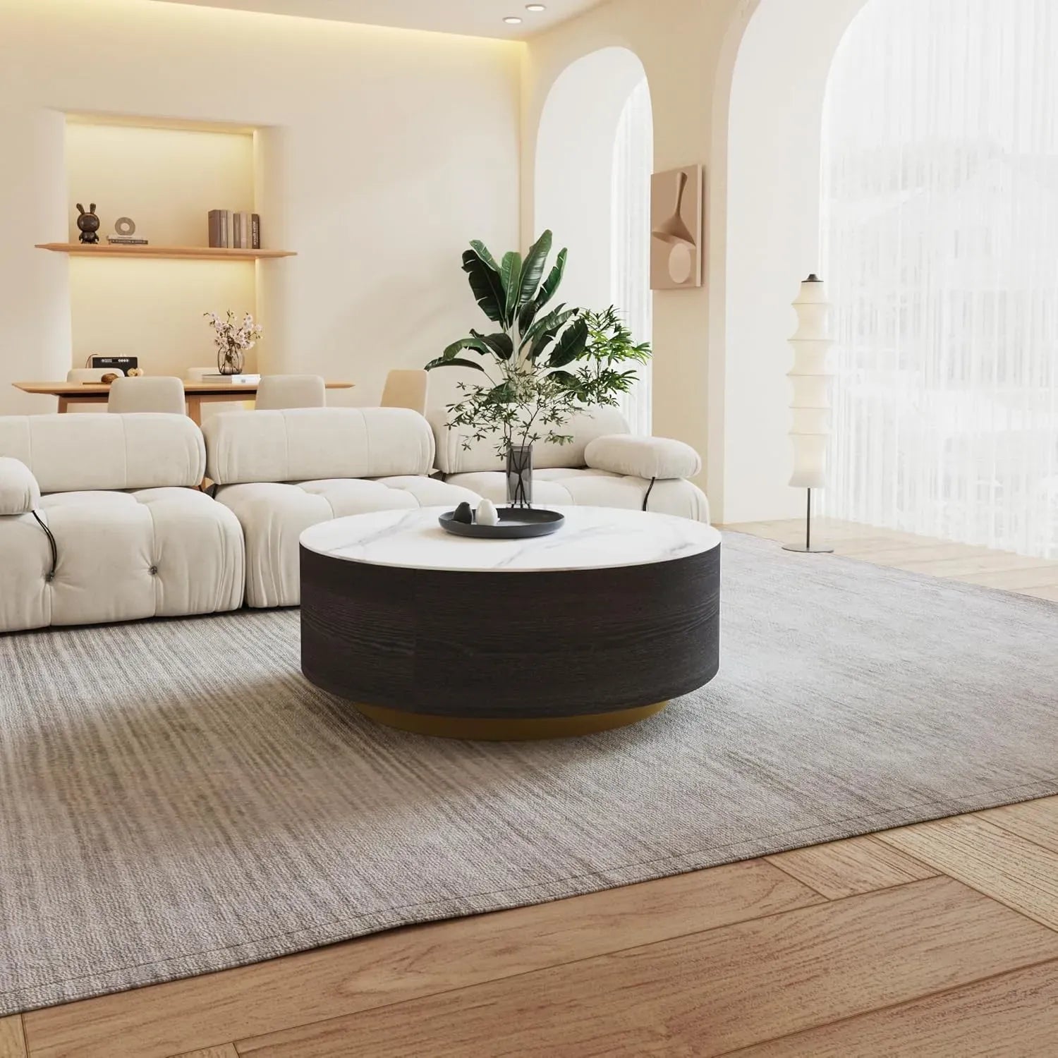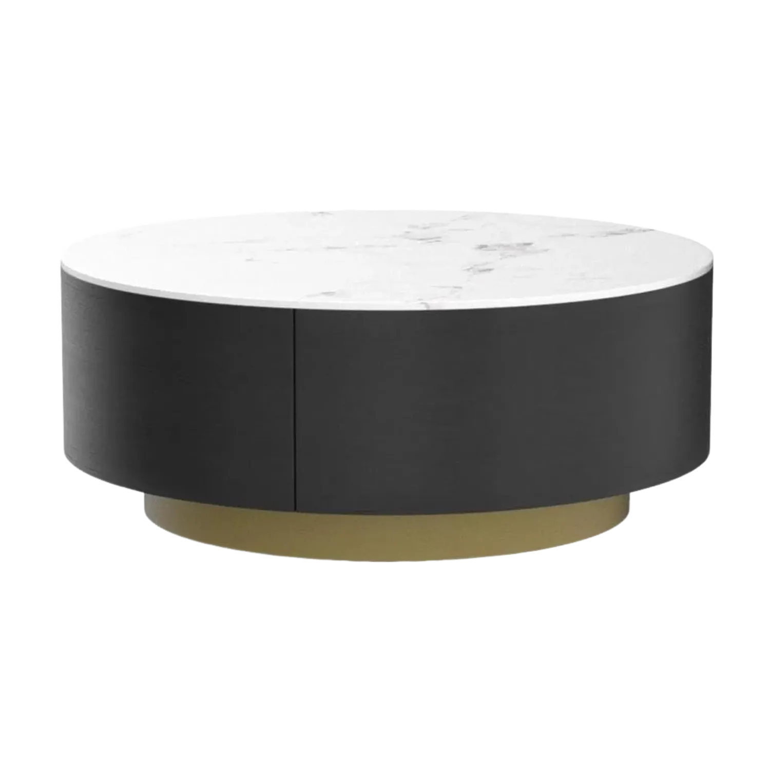 Solenza Zaya 33" Modern Round Coffee Table | Withe Marble Top & Black Wood Grain